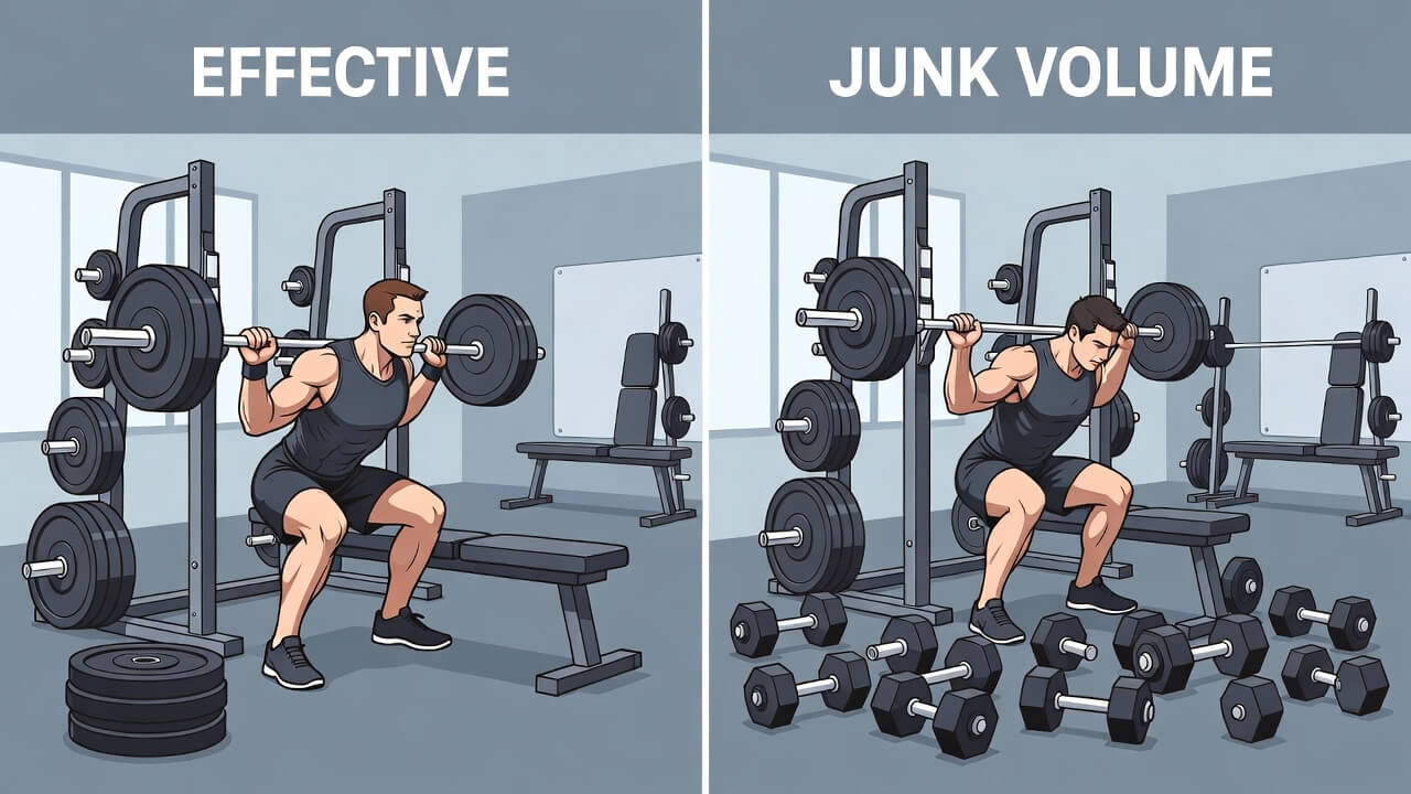 When training volume becomes excessively high, some sets may become junk volume. Junk volume refers to sets that add fatigue without providing much additional benefit for muscle growth.